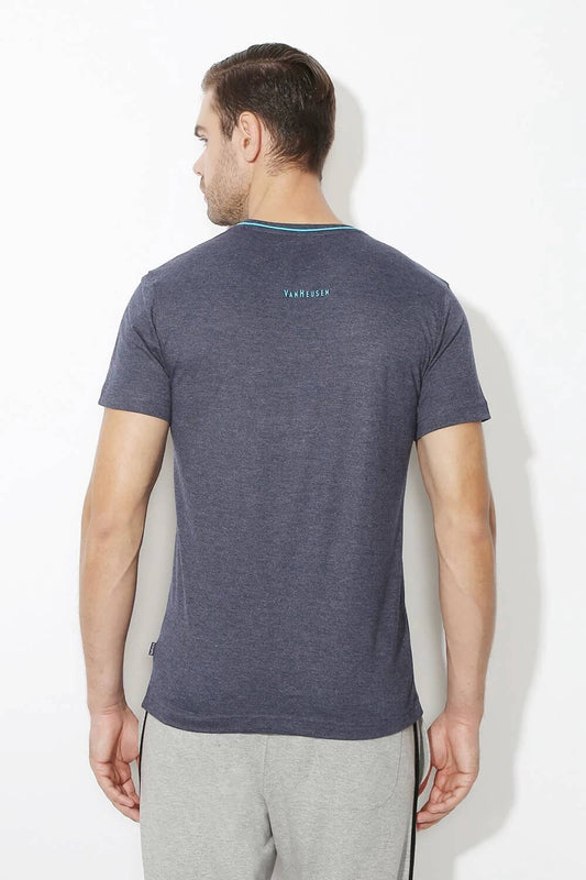 Van Heusen Blue Melange Round Neck Full Sleeve T-Shirt for Men #60037