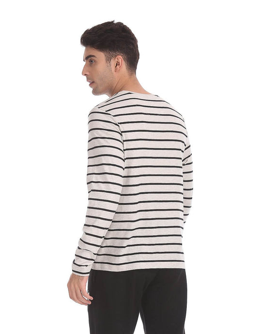 U S Polo Assn Grey Full Sleeve Striped Tshirt for Men #I689