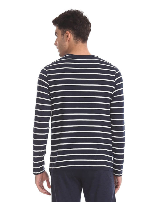 U S Polo Assn Navy Full Sleeve Striped Tshirt for Men #I689