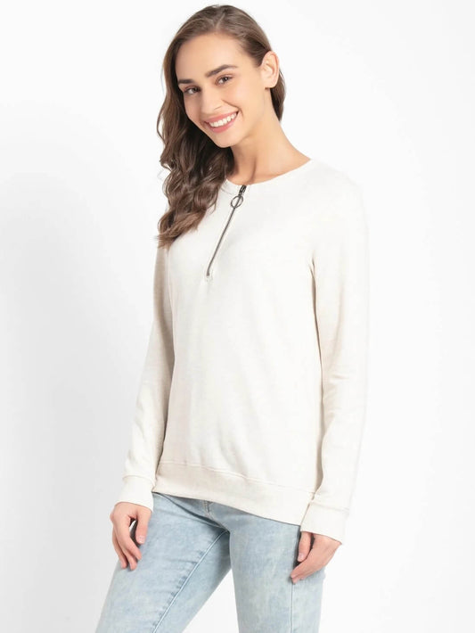 Jockey Cream Melange Sweatshirt for Women #UL11