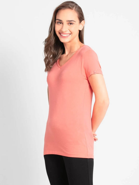 Jockey Blush Pink V-Neck Tee for Women #1359